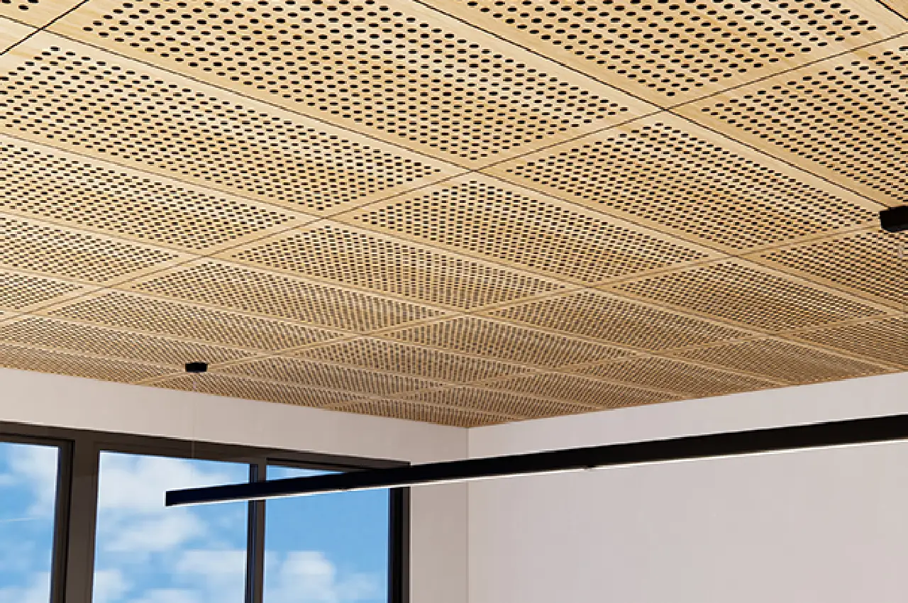 Perforated wood Acoustic Panel Saudi Arabia panels can be installed on walls, ceilings, and partitions in offices, conference rooms, educational facilities, and public spaces to enhance acoustic performance.