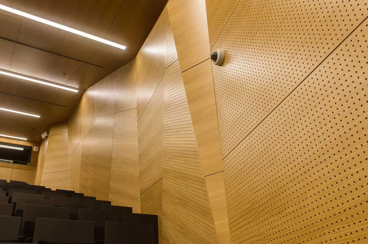 Perforated wood Acoustic Panel Saudi Arabia panels are high-quality acoustic solutions made from natural wood with precision perforations designed to absorb sound and reduce echo in offices, auditoriums, and commercial spaces.